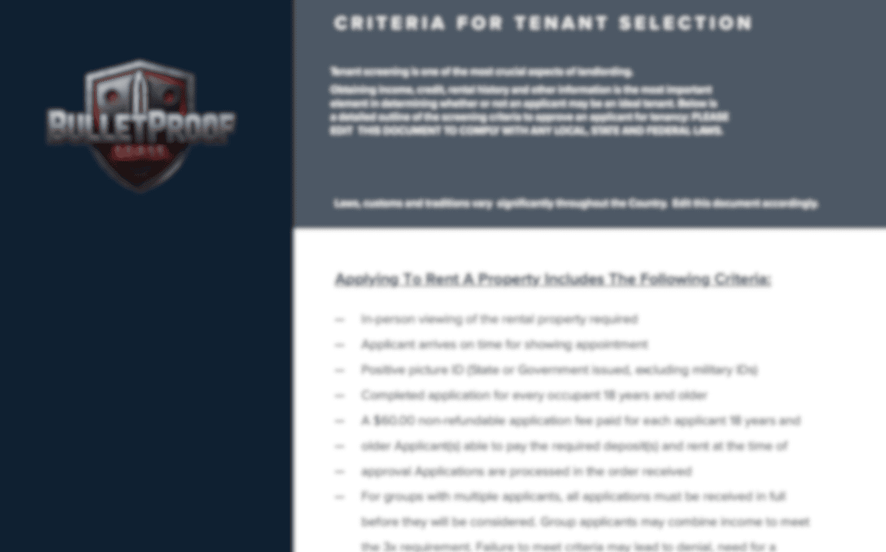 4 Page Tenant Screening Criteria Guide, Editable PDF